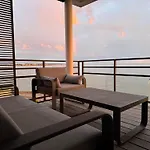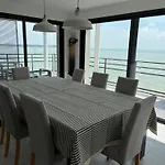 The spacious 120 m^2 Vue Panoramique Apartment Royan is located in Royan, within a 7-km distance of Royan Golf Course, and pampers guests with a hot tub. The 3-bedroom apartment is approximately a 15-minute drive from Le Puits de l' Auture and in the neighbourhood of Garden Tennis.